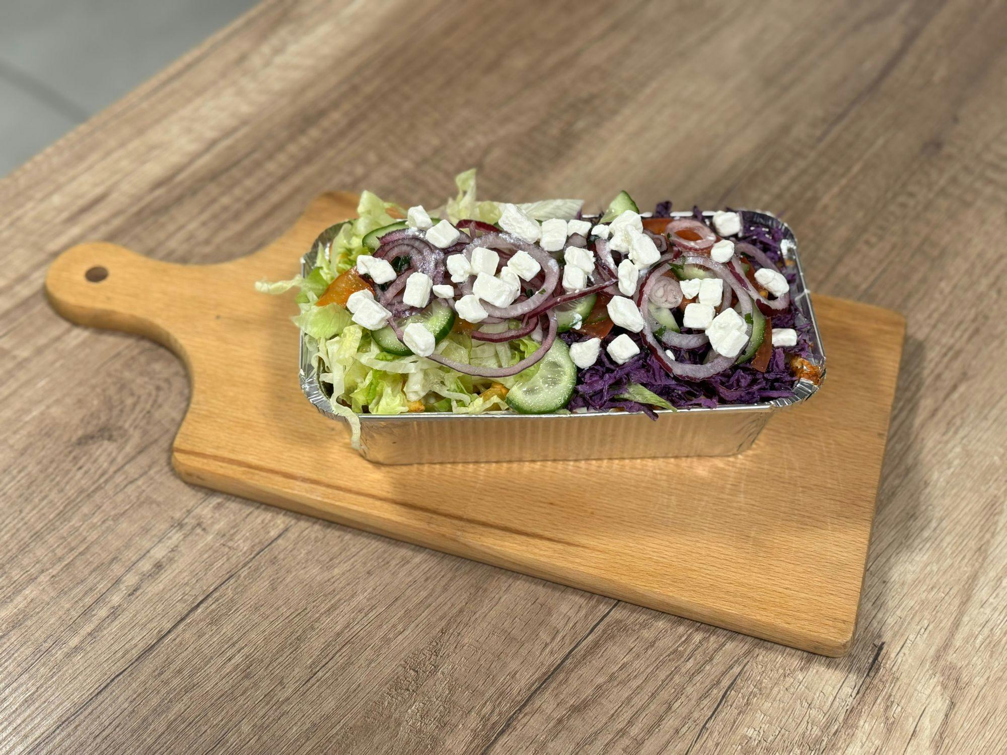 z dodatkową sałatką i ogórkiem